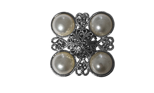 METAL BUTTON WITH SHANK WITH PEARLS SILVER BLACK